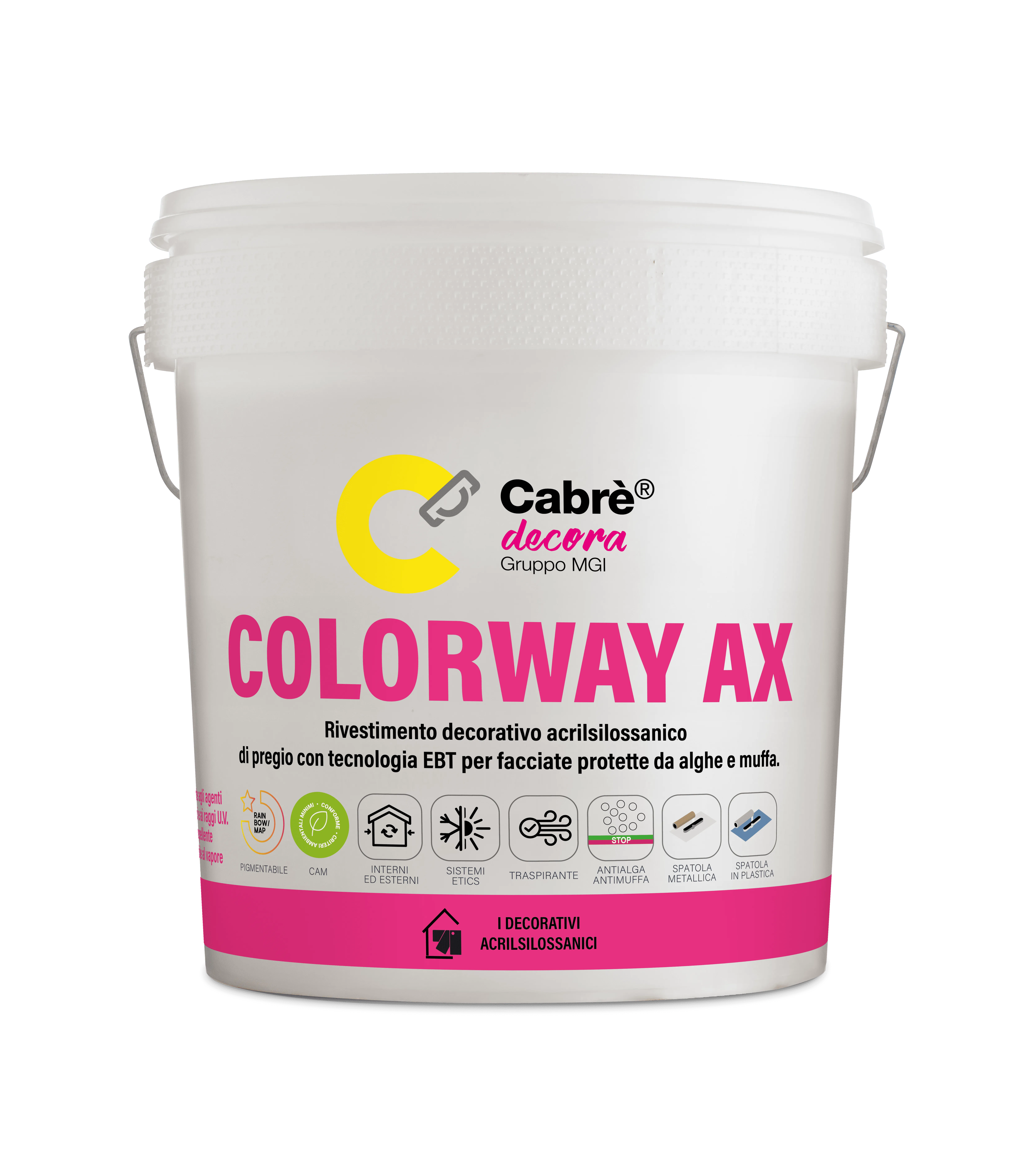 Rivestimento decorativo di pregio pigmentabile protettivo antialga e antimuffa, idrorepellente, pronto all’uso, a base di copolimeri acrilici ad altissima resistenza agli alcali ed agli agenti atmosferici.