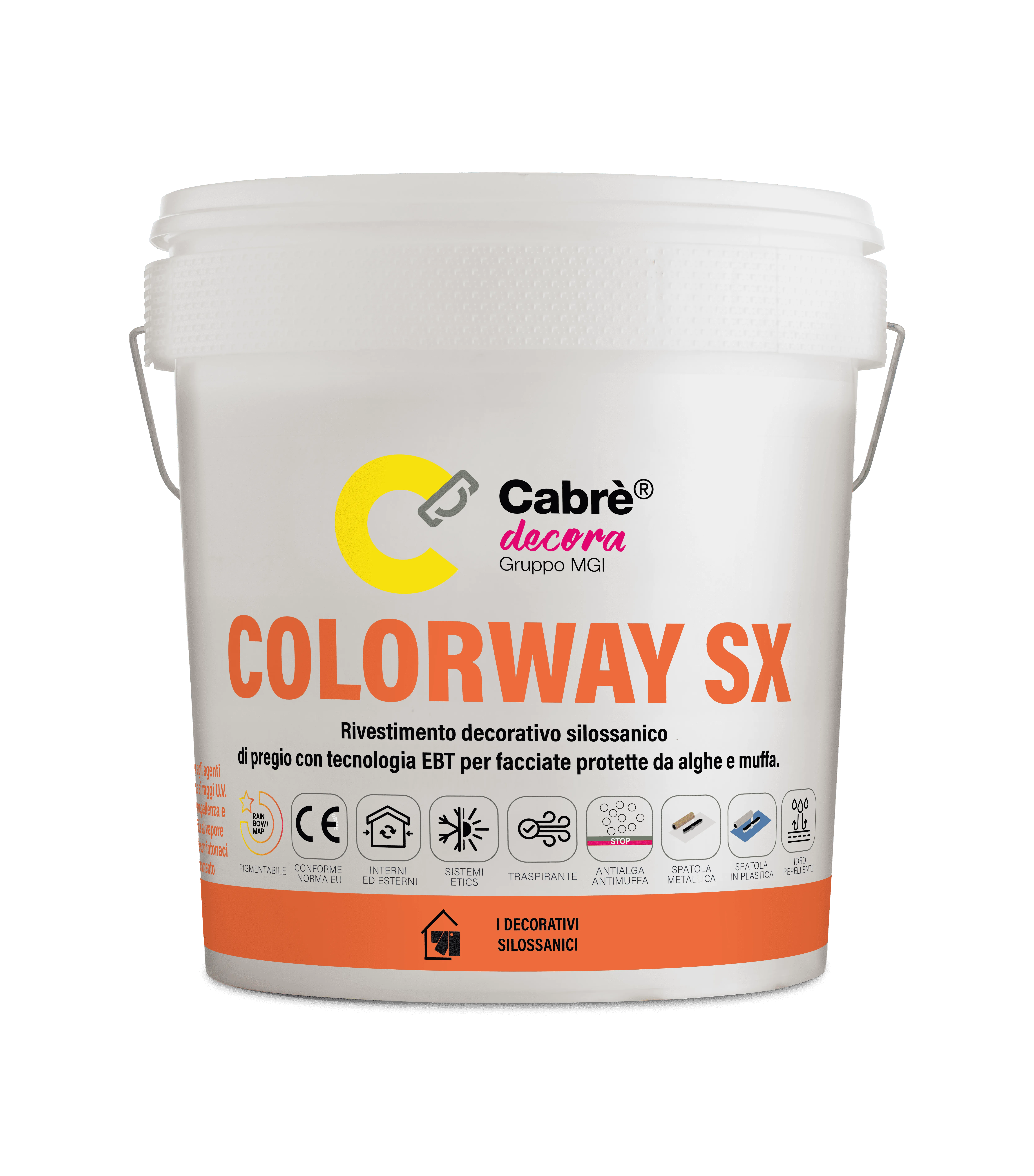 Pittura murale decorativa acrilsilossanica di pregio con tecnologia EBT per facciate. Resistente anche negli ambienti più aggressivi, protezione prolungata da alghe e muffe, resistente agli agenti atmosferici ed ai raggi U.V., idrorepellente.